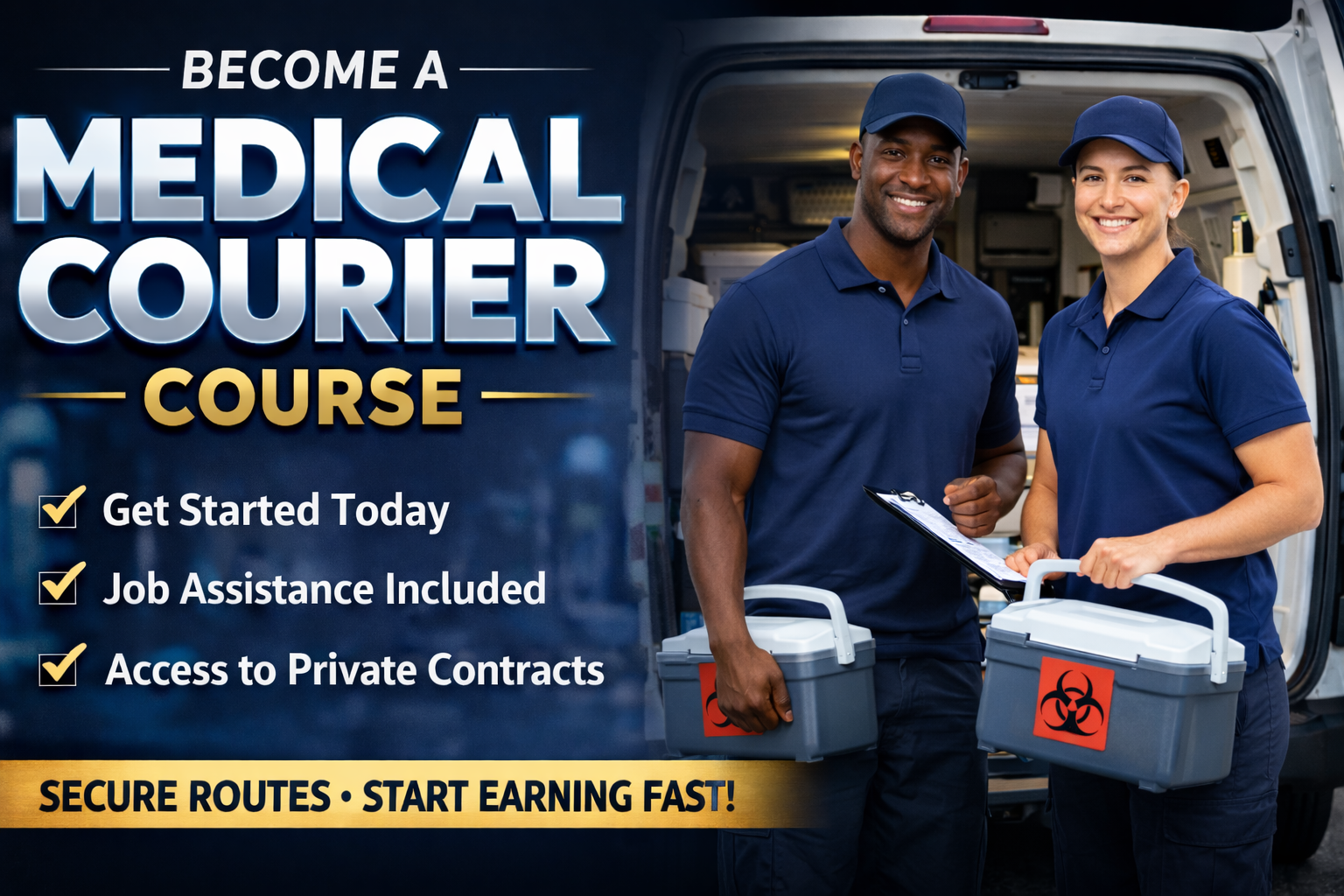 I started with zero experience and felt overwhelmed trying to figure this out on my own. This course broke everything down step by step and even pointed me toward real contracts. The job assistance was a game changer. If you’re serious about becoming a medical courier and want a shortcut instead of guessing, this is it.